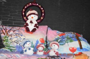 Hier sehen wir Engel den Grinch und auch noch einen großen Schneemann